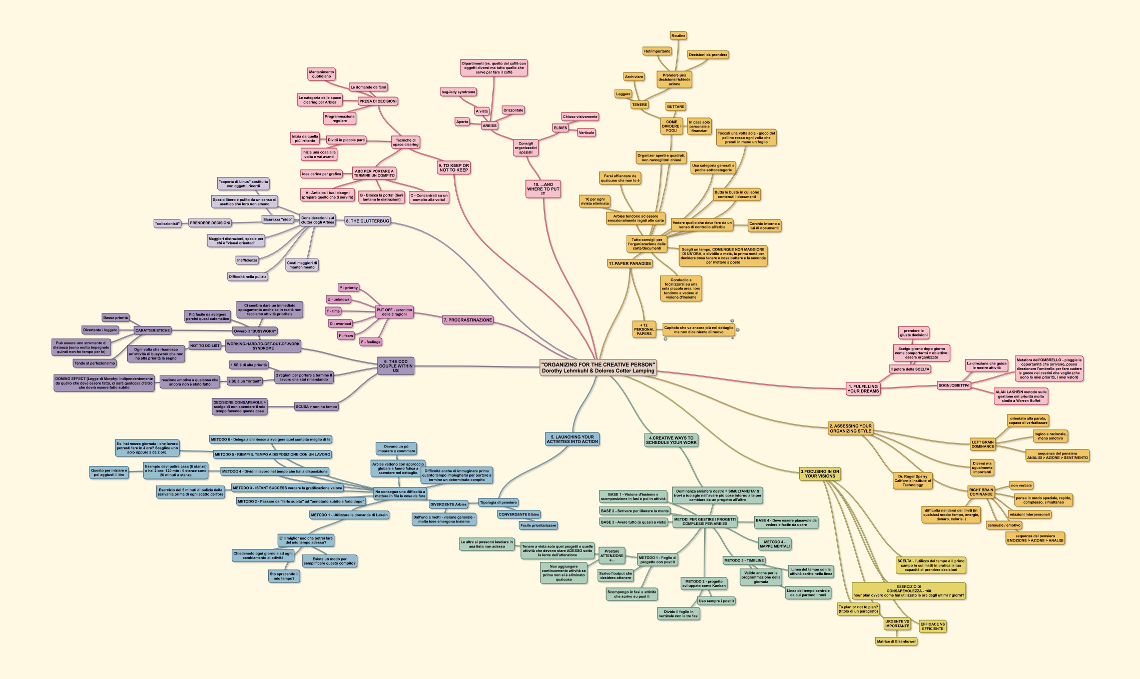 Nel mio caso, sono solita fare spesso riassunti dei libri che leggo per lavoro, sotto forma di mappa mentale. Credo che grazie a questo strumento, sia molto più semplice, in un secondo momento, richiamare alla memoria un’informazione e/o un concetto (andandolo poi eventualmente a riprendere all’interno del libro di riferimento).